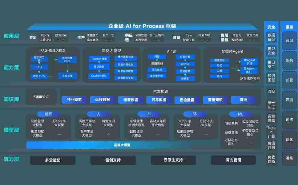 NG娱乐问学智车解决方案是一套基于AI技术的汽车行业智能化系统,,覆盖从底层算力到顶层AI应用的全栈方案。。方案由算力层、、、、模型层和应用层组成:算力层,,方案支持多种一体机配置,,,,具备云端灵活部署、、多云适配以及动态优化计算资源的能力;模型层,,NG娱乐问学平台版提供了企业级AI应用一站式构建与管理平台,,,,支持基于后训练强化技术的汽车企业专属模型的训练、、评测和运营;应用层,,,,NG娱乐问学DeepSeek版提供包括超级员工、、智能招采、、、、智能营销、、、智能客服、、AI for BI等一系列解决方案,,可助力汽车行业实现数字化转型,,,,让管理更智能、、、、响应更敏捷。。。